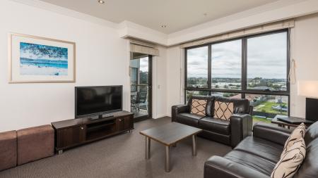 The Two Bedroom apartments are fully self-contained with one bathroom and balcony. Bedding configuration offered is two queen beds. Full use of resort pools, spa, children's playground and pickleball.