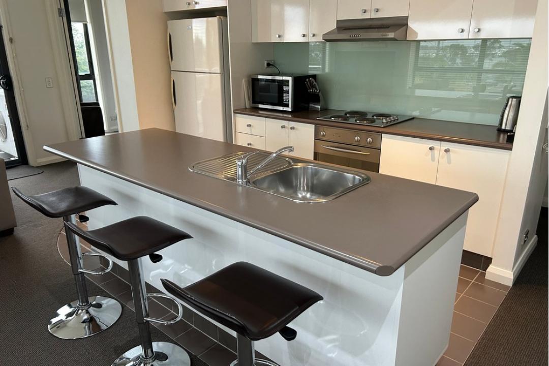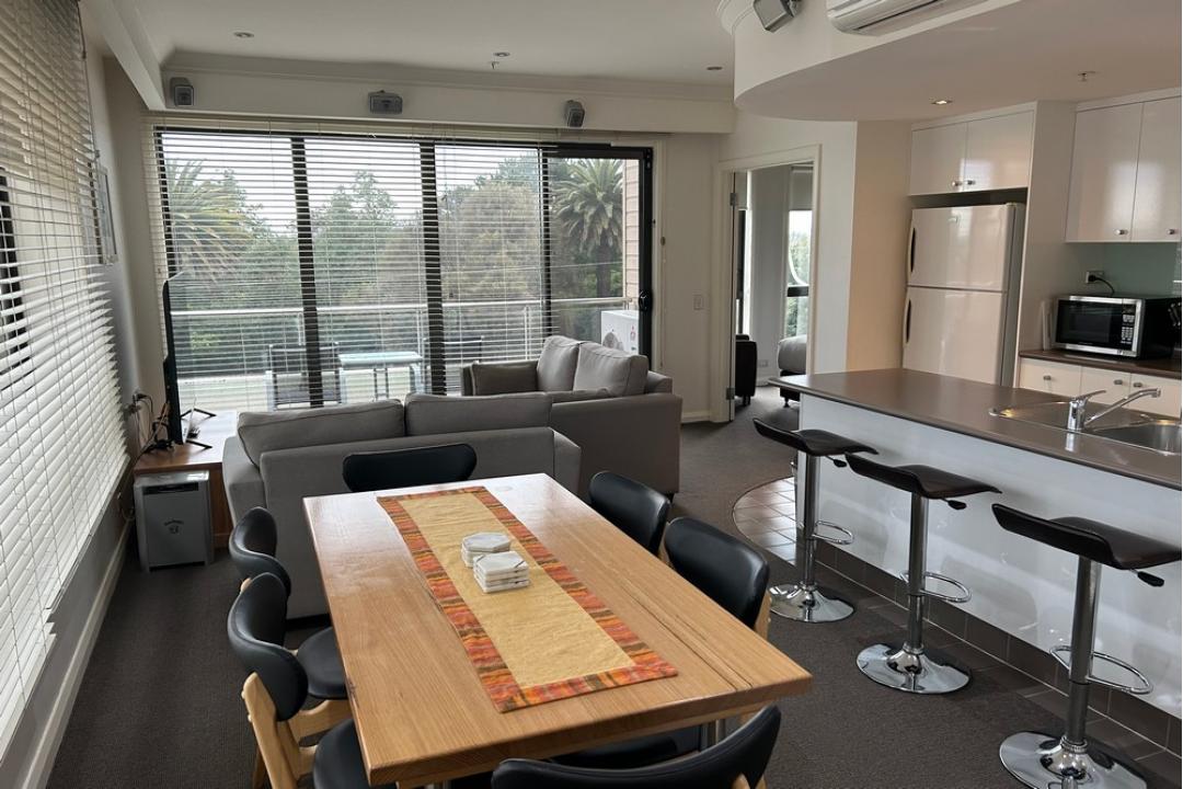 The Three Bedroom apartments boast magnificent views, are fully self-contained with two bathrooms and a balcony. A variety of bedding configuration options are available to suit all needs. Full use of resort pools, spa, children's playground and pickleball.