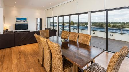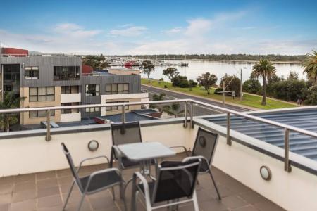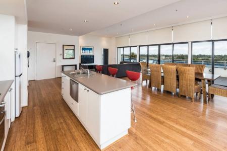 The Three Bedroom Deluxe apartments boast magnificent lakeside and ocean views, are fully self-contained with two bathrooms and two balconies. The master bedroom is a retreat of its own. A variety of bedding configuration options are available to suit all needs. Full use of resort pools, spa, children's playground and pickleball.